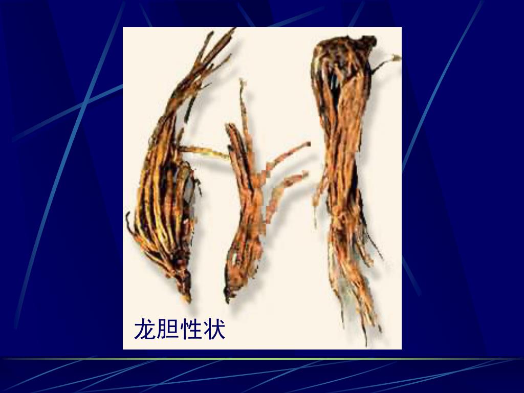 根茎质坚韧,不易折断;根质脆,断面略平坦,皮部黄白或浅黄棕色,木部色较浅。气微,味极苦。根茎质坚韧,不易折断;根质脆,断面略平坦,皮部黄白或浅黄棕色,木部色较浅。气微,味极苦。 • 龙胆的根通常20余条;三花龙胆的根约15条;条叶龙胆少于10条。 • 坚龙胆根茎短,疏生细长的根;根黄棕色或红棕色。表面无横皱纹,外皮膜质,易脱落,木部黄白色,易与皮部分离。