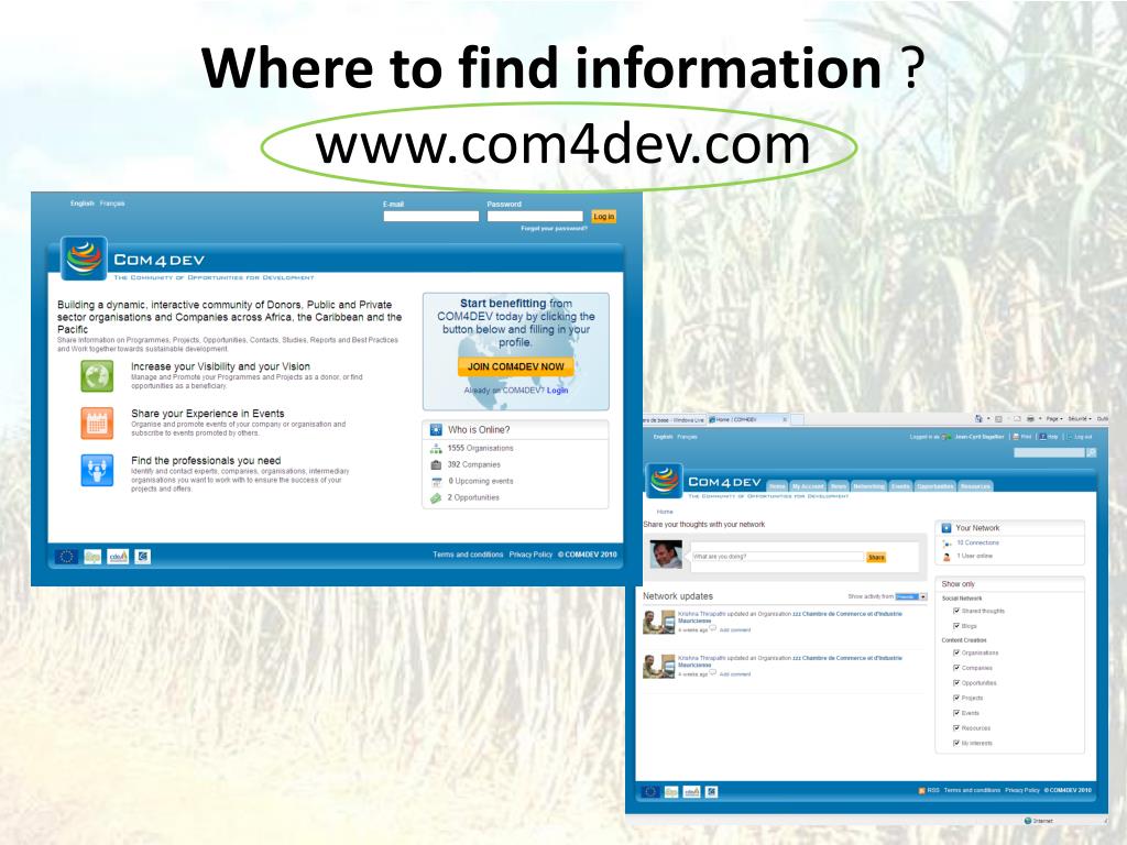 Where to find information ?www.com4dev.com • Com4Dev • Website