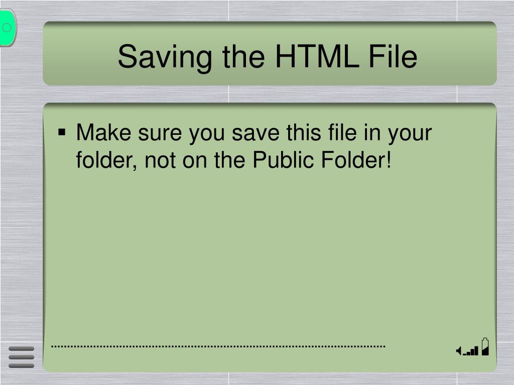 Saving the HTML File • Make sure you save this file in your folder, not on the Public Folder!