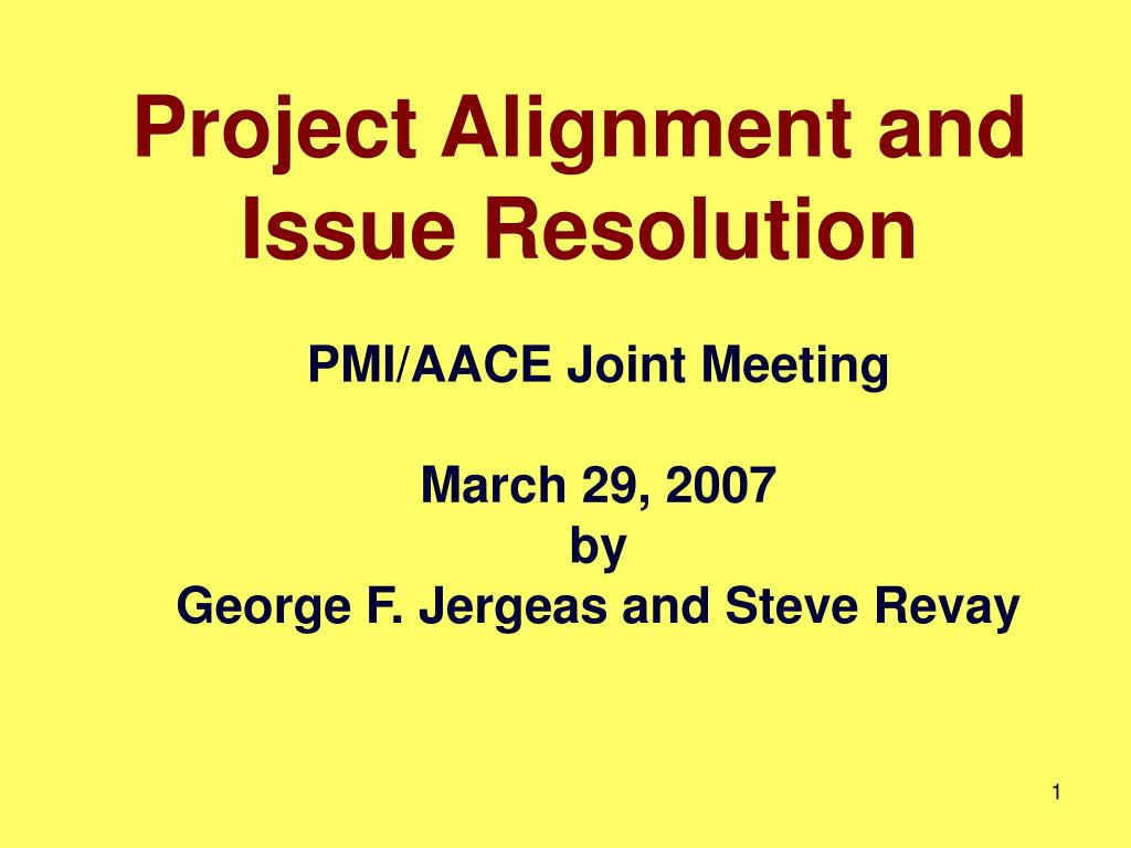 Project Alignment and Issue Resolution PMI/AACE Joint Meeting March 29, 2007 by George F. Jergeas and Steve Revay