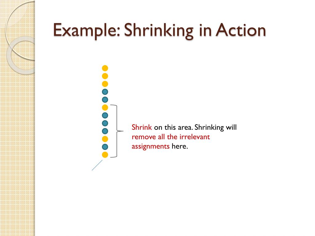 Example: Shrinking in Action Shrink on this area. Shrinkingwill remove all the irrelevant assignments here.
