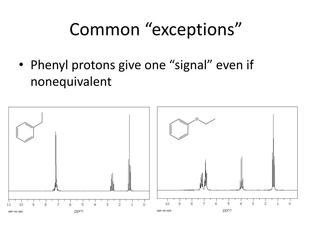 Common “exceptions” • Phenyl protons give one “signal” even if nonequivalent