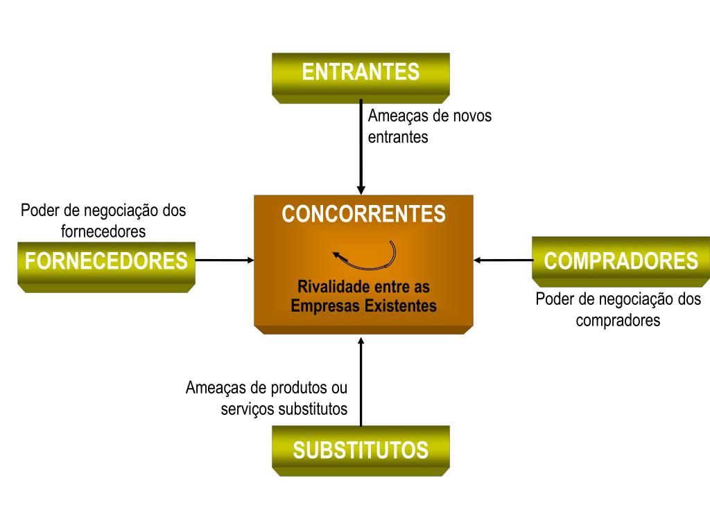 ENTRANTES Ameaças de novos entrantes Poder de negociação dos fornecedores CONCORRENTES FORNECEDORES COMPRADORES Rivalidade entre as Empresas Existentes Poder de negociação dos compradores Ameaças de produtos ou serviços substitutos SUBSTITUTOS