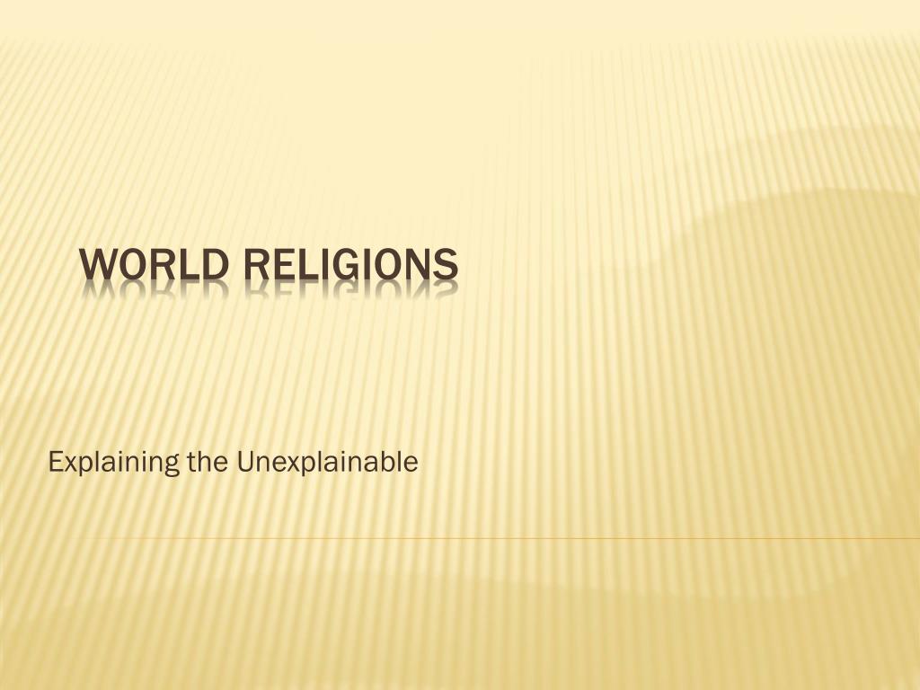 Explaining the Unexplainable. World Religions. Relationship with a Deity Deity – god figure Expression of Goodness Sacred Frame of Mind Moral Exchange of Power Ethical Practice Set of Beliefs and Practices. What is Religion?. Atheistic - no deity Monotheistic - one deity