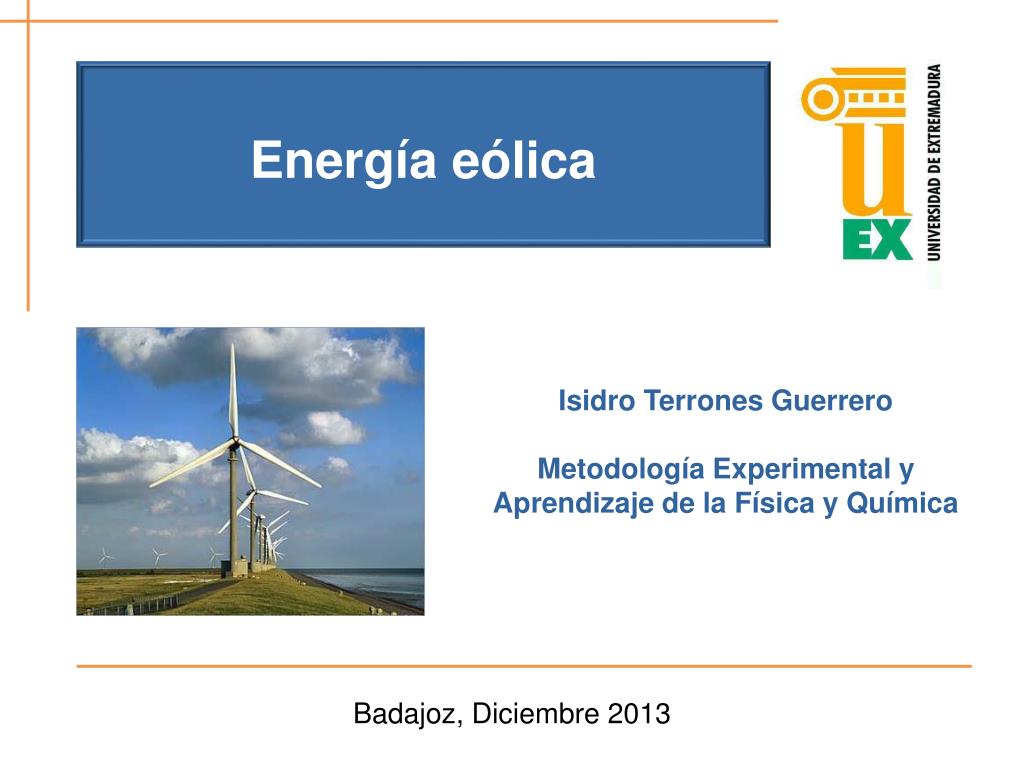 Energía eólica Isidro Terrones Guerrero Metodología Experimental y Aprendizaje de la Física y Química Badajoz, Diciembre 2013