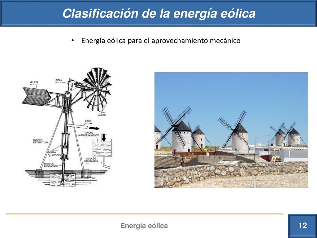 Clasificación de la energía eólica • Energía eólica para el aprovechamiento mecánico Energía eólica