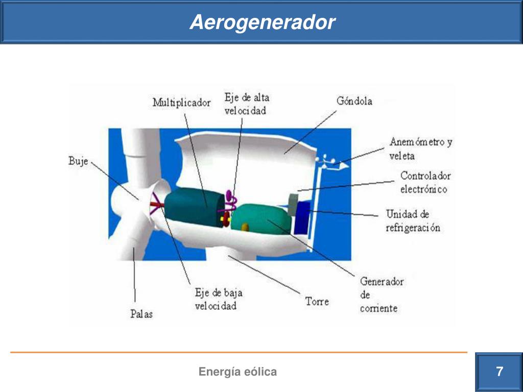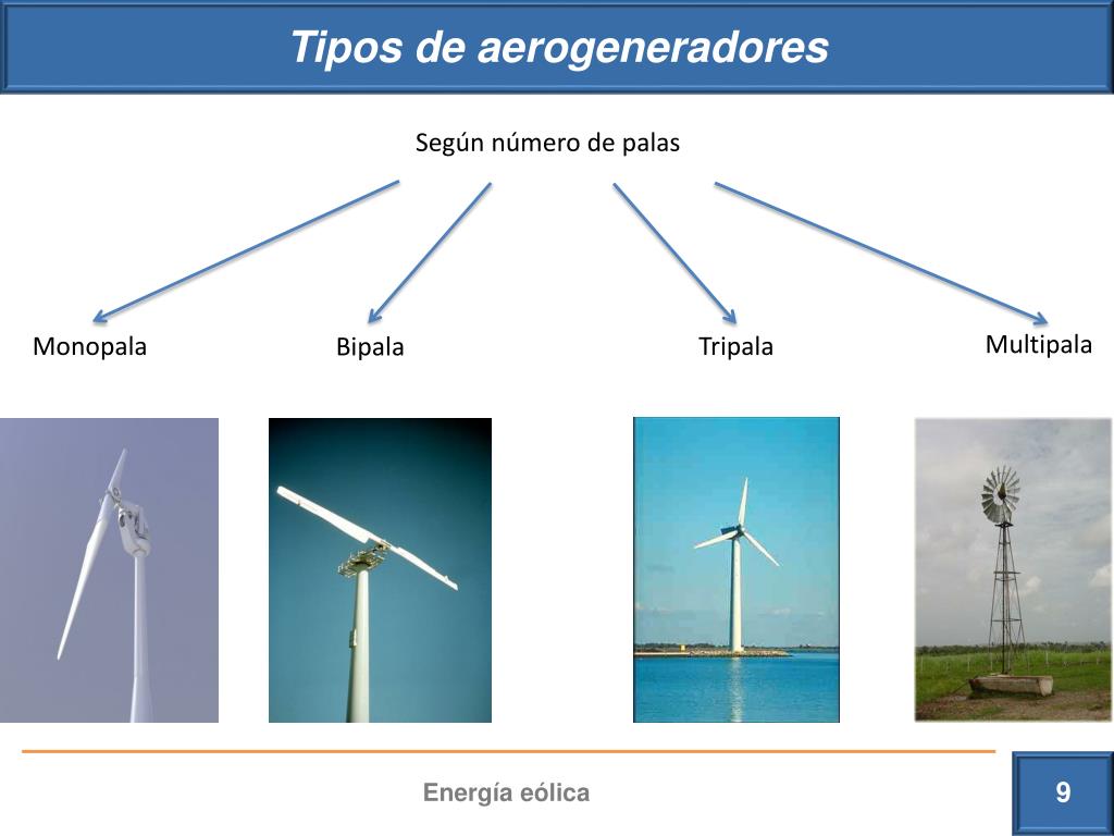 Tipos de aerogeneradores • Según número de palas Multipala Tripala Monopala Bipala Energía eólica