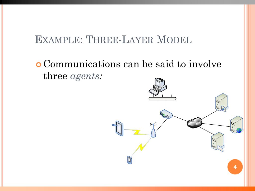 Example: Three-Layer Model • Communications can be said to involve three agents: