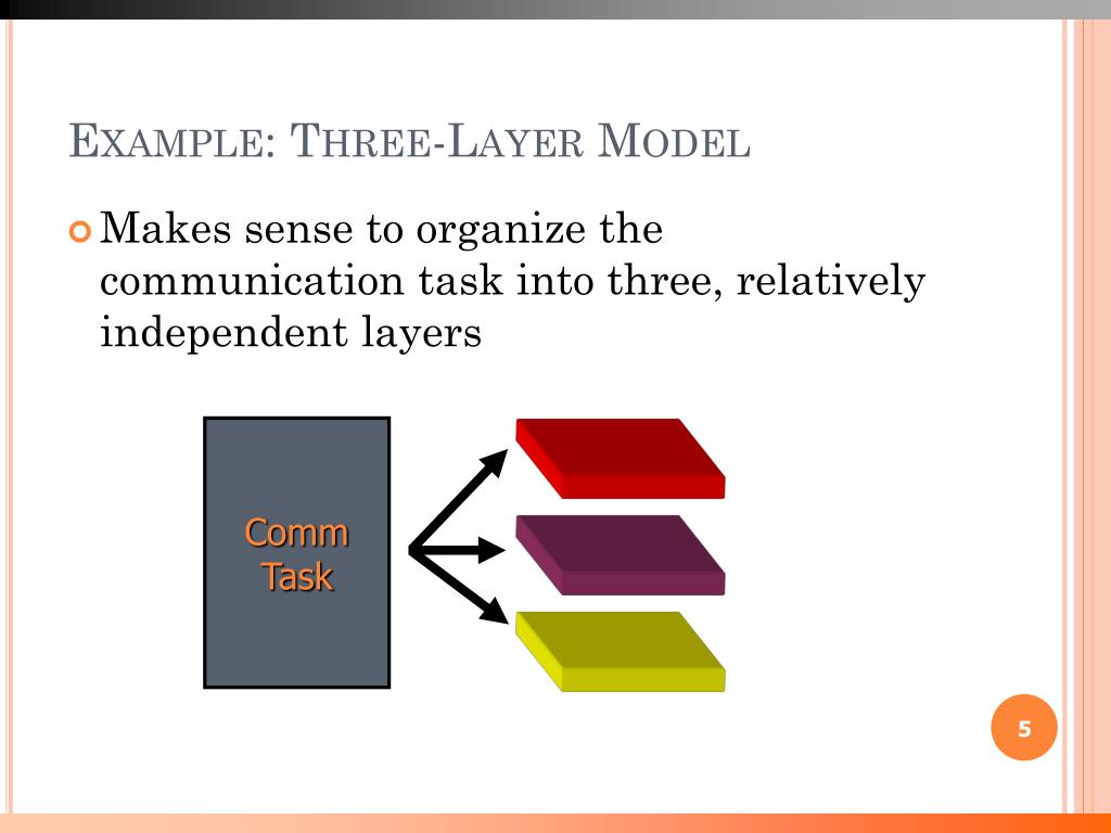 Example: Three-Layer Model • Makes sense to organize the communication task into three, relatively independent layers Comm Task