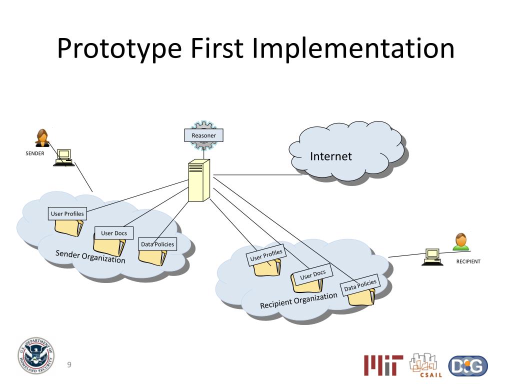 Prototype Concept Sender Organization Internet Reasoner SENDER User Profiles User Docs Data Policies Recipient’s Organization RECIPIENT User Profiles User Docs Data Policies