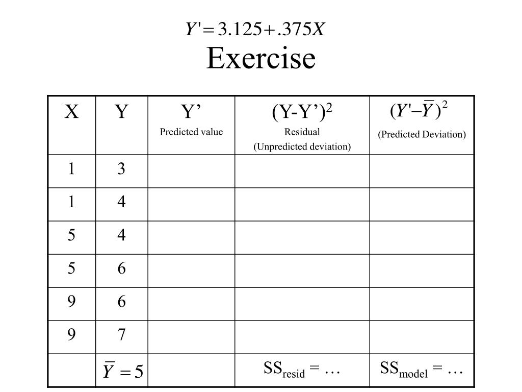 Regression ANOVA SSY SSmodel SSresid Y Y’