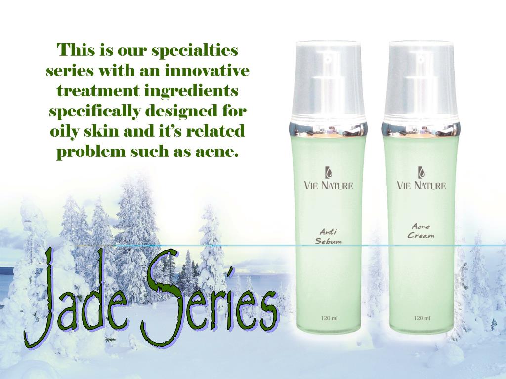 This is our specialties series with an innovative treatment ingredients specifically designed for oily skin and it’s related problem such as acne. Jade Series