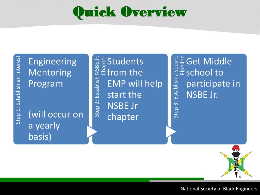 NSBE PCI: EMP • Engineering Mentoring Program • A program that is designed to stimulate interests in S.T.E.M • The point of this program: • To help students have a positive attitude towards academic excellence • To stimulate enthusiasm about S.T.E.M • Increase the number of minorities attending and graduating from college. National Society of Black Engineers