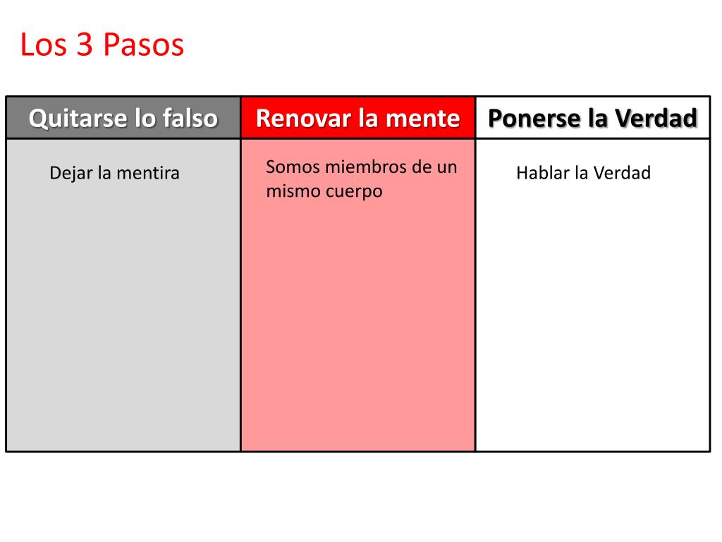 Los 3 Pasos Quitarse lo falso Renovar la mente Ponerse la Verdad Dejar la mentira Hablar la Verdad