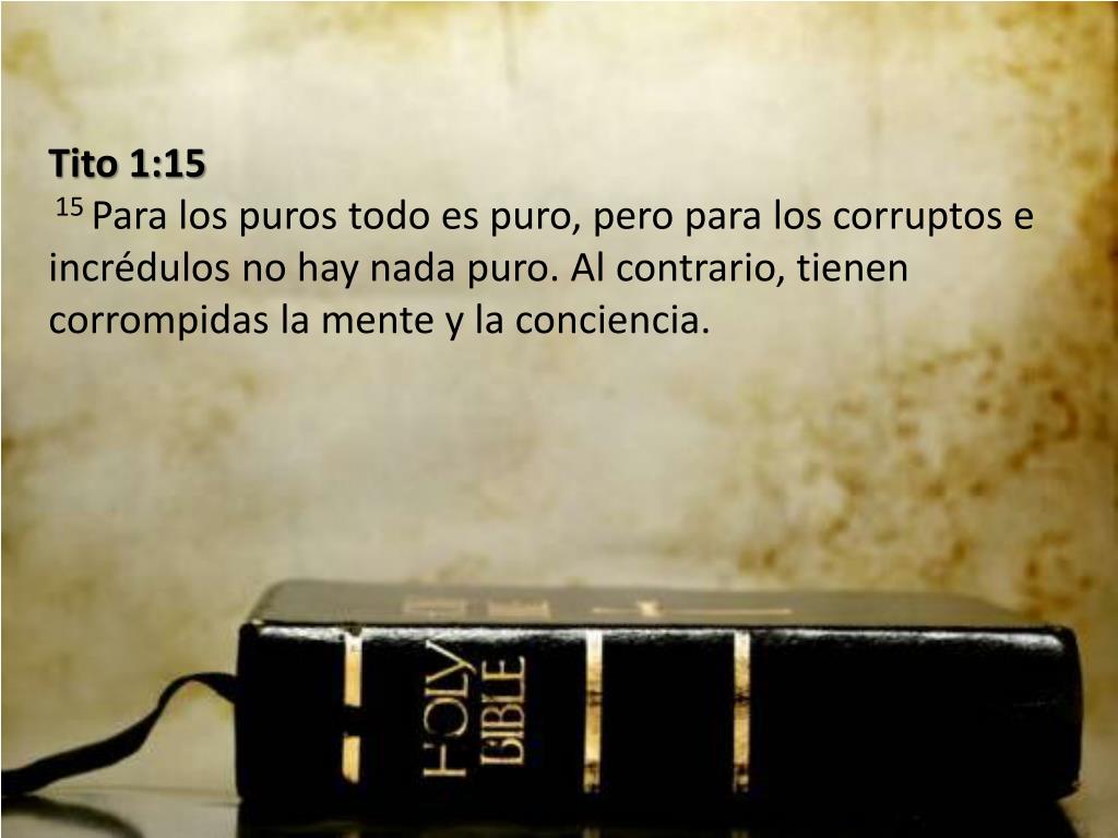 Tito 1:15 15 Para los puros todo es puro, pero para los corruptos e incrédulos no hay nada puro. Al contrario, tienen corrompidas la mente y la conciencia.