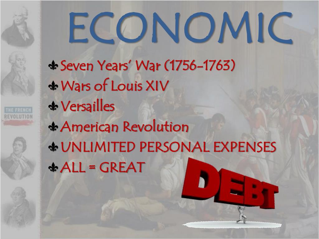 ECONOMIC • Seven Years’ War (1756-1763) • Wars of Louis XIV • Versailles • American Revolution • UNLIMITED PERSONAL EXPENSES • ALL = GREAT