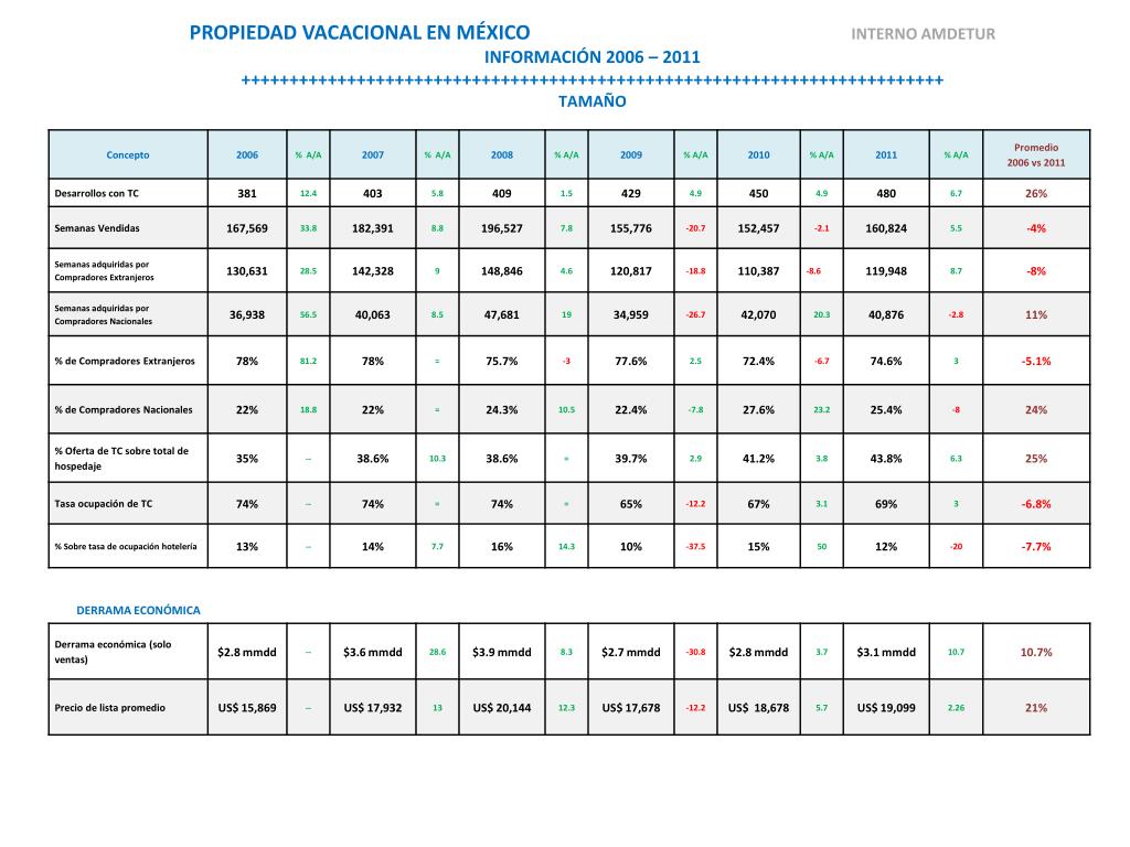 PROPIEDAD VACACIONAL EN MÉXICO INTERNO AMDETUR INFORMACIÓN 2006 – 2011 +++++++++++++++++++++++++++++++++++++++++++++++++++++++++++++++++++++++++ TAMAÑO