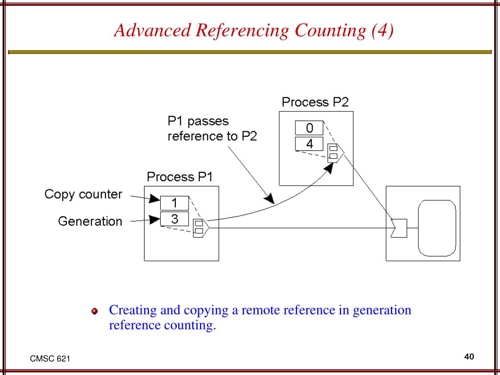 Advanced Referencing Counting (4) • Creating and copying a remote reference in generation reference counting.