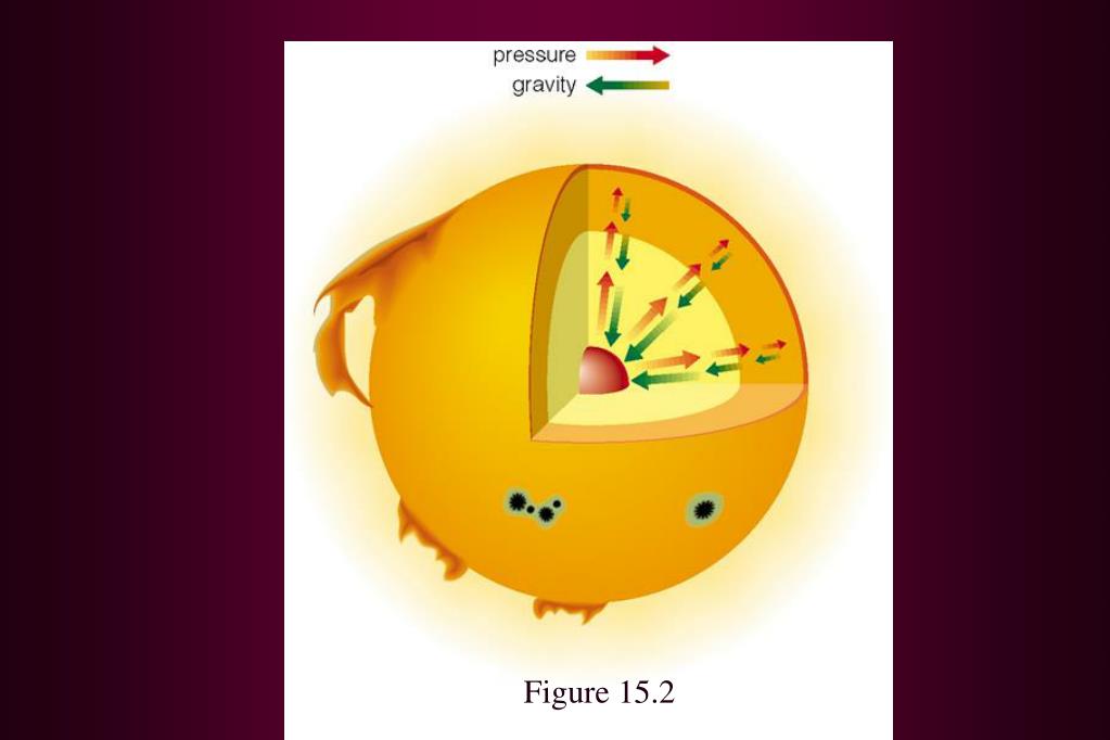 Sun is in gravitational equilibrium • The weight of overlying material is balanced by the underlying pressure of hot gas • This keeps the Sun’s diameter stable