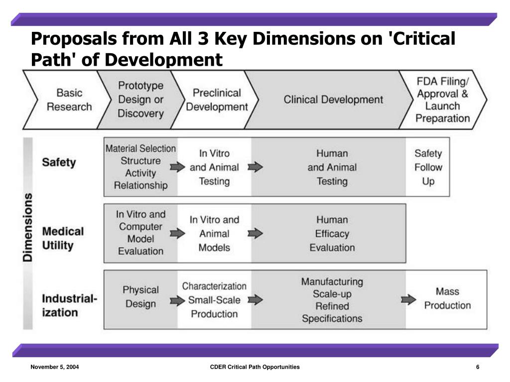 Proposals from All 3 Key Dimensions on 'Critical Path' of Development CDER Critical Path Opportunities