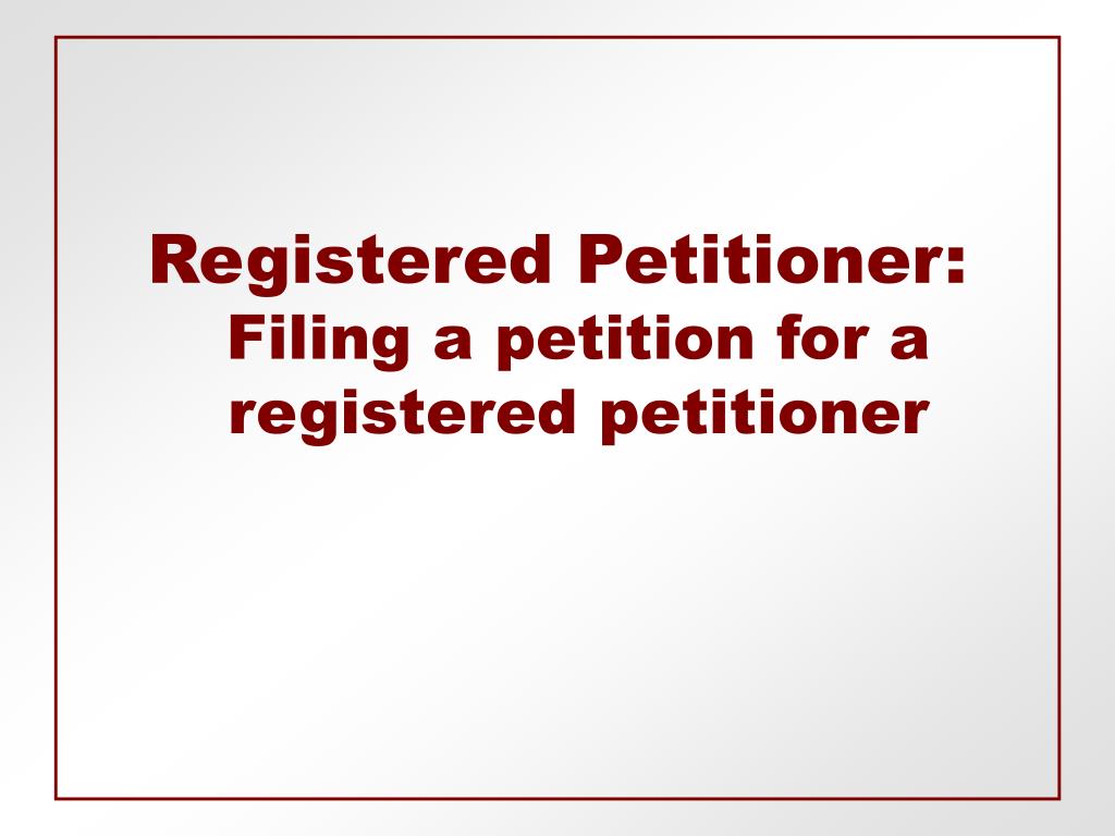 Filing a petition for a registered petitioner • You must provide the name and date of birth of the Petitioner.