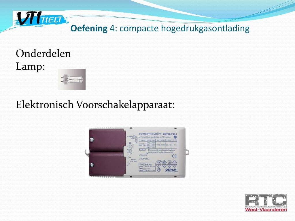 Oefening 4: compactehogedrukgasontlading OnderdelenLamp: Elektronisch Voorschakelapparaat: