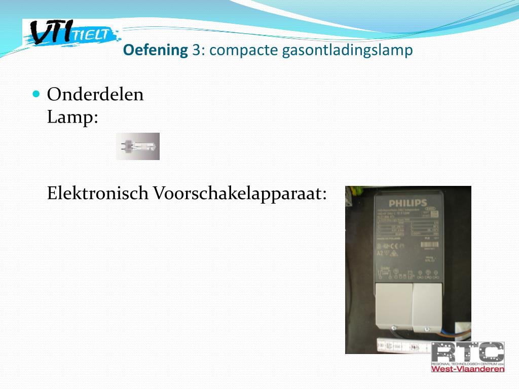 Oefening 3: compactegasontladingslamp • OnderdelenLamp: Elektronisch Voorschakelapparaat:
