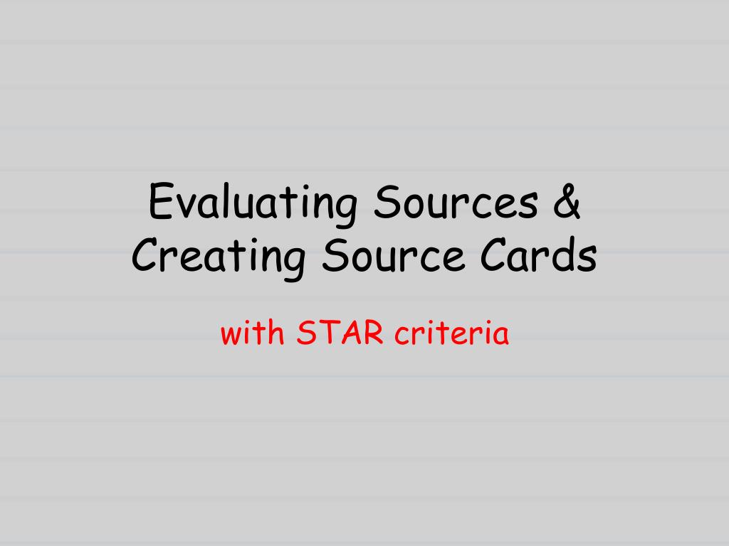 Evaluating Sources & Creating Source Cards with STAR criteria