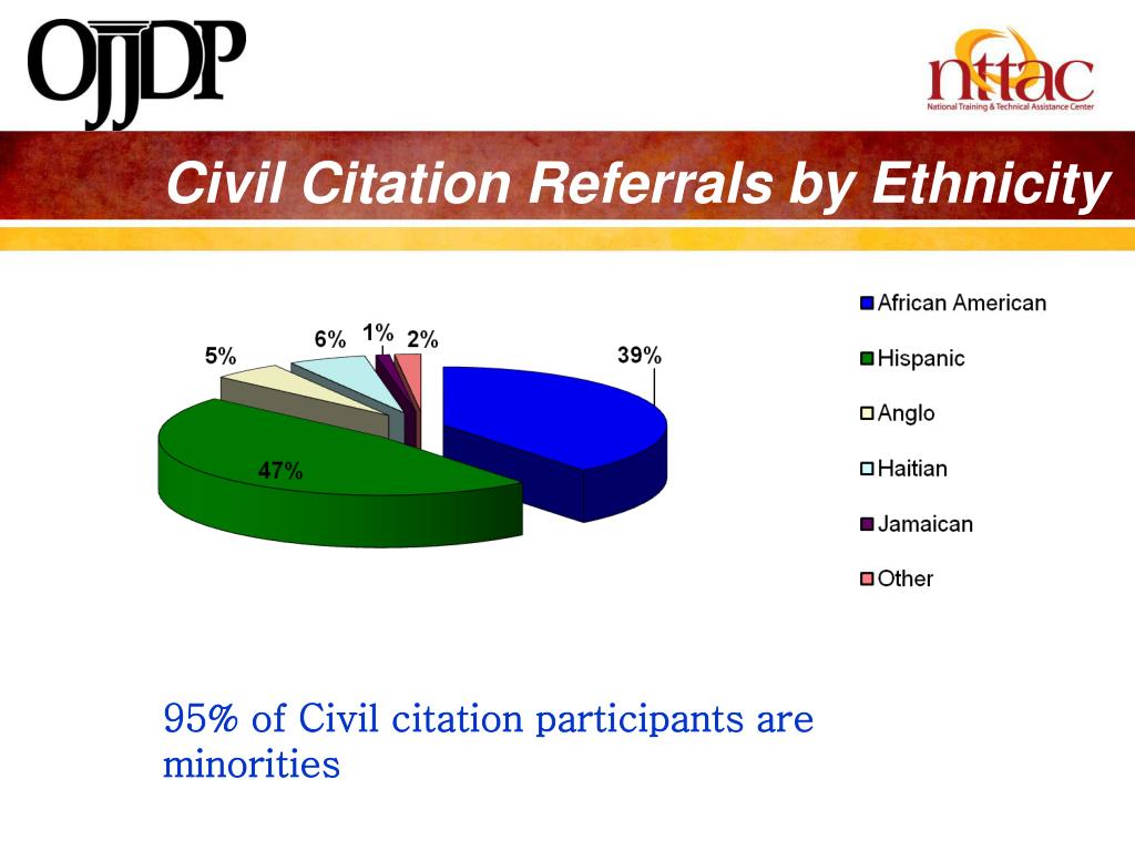 Civil Citation Referrals by Ethnicity 95% of Civil citation participants are minorities