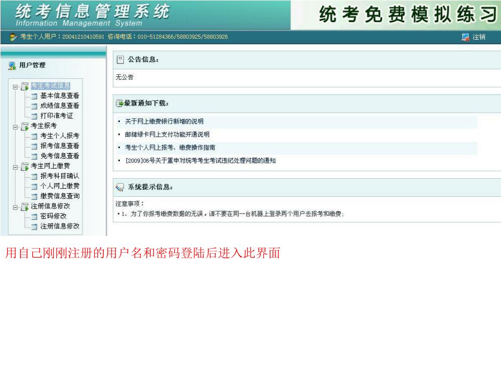 用自己刚刚注册的用户名和密码登陆后进入此界面用自己刚刚注册的用户名和密码登陆后进入此界面