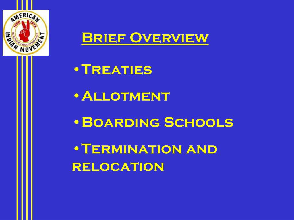 Brief Overview • Treaties • Allotment • Boarding Schools • Termination and relocation
