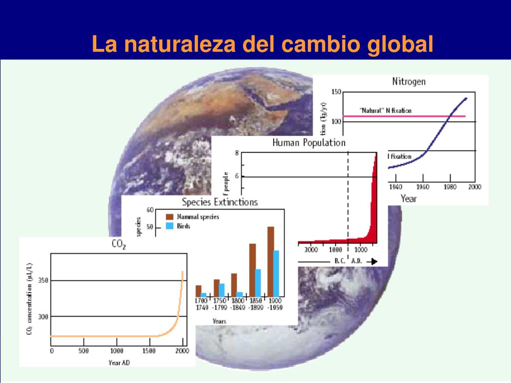 Cambio Global “Cambios en el medio ambiente global (incluyendo modificaciones en el clima, en productividad de tierra, en los océanos u otros recursos hídricos, en la química atmosférica, y en sistemas ecológicos) que puedan alterar la capacidad de la tierra para sostener la vida”