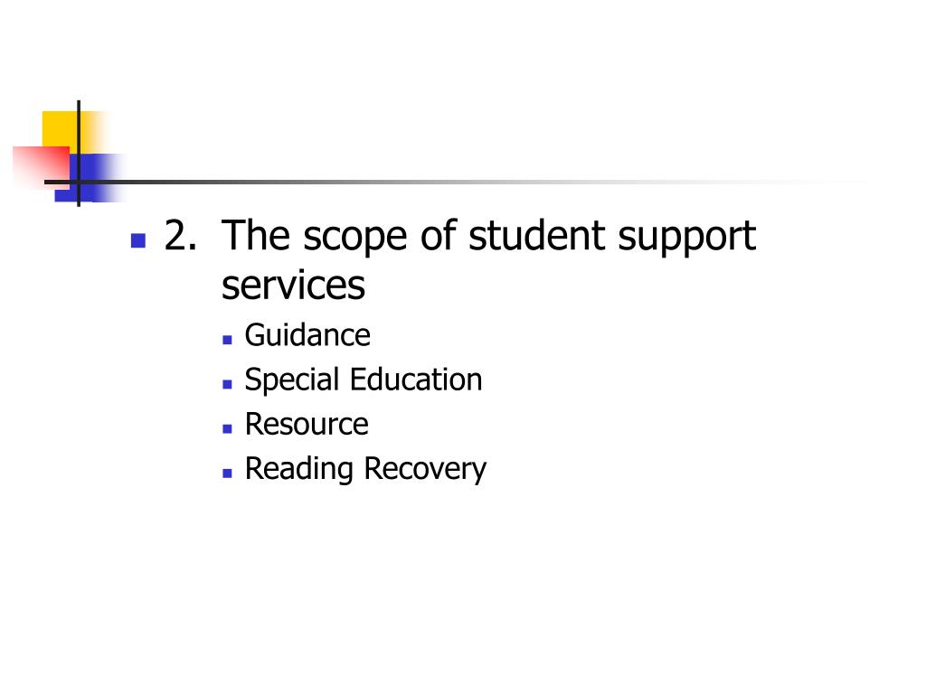 2. The scope of student support services • Guidance • Special Education • Resource • Reading Recovery