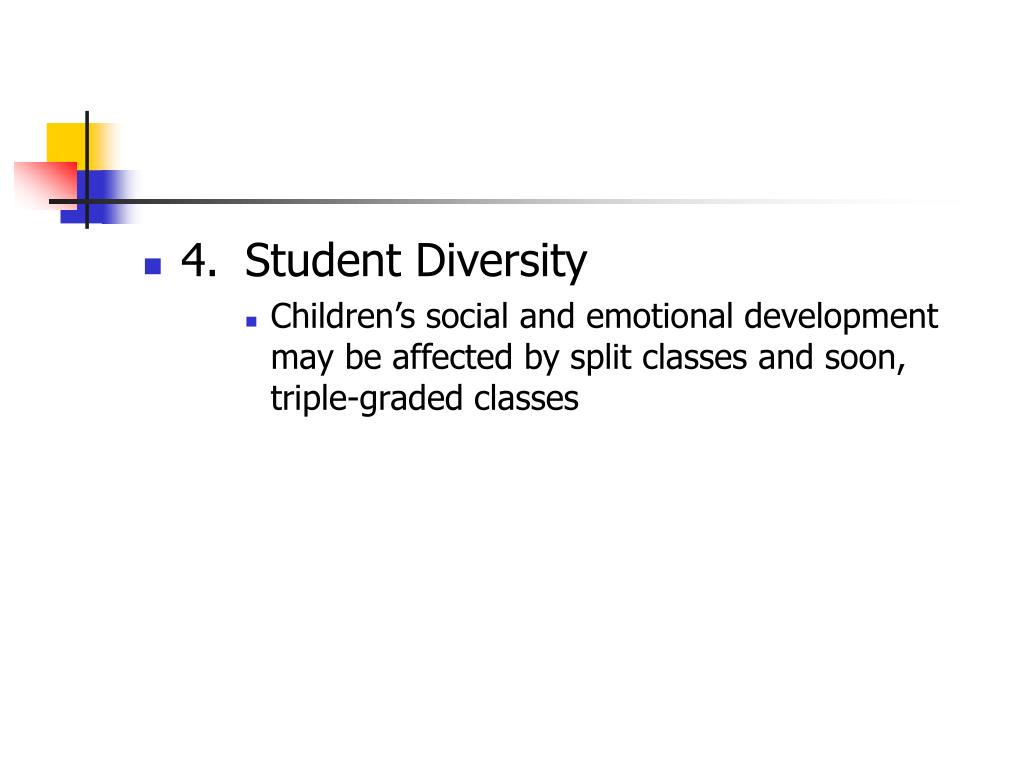 4. Student Diversity • Children’s social and emotional development may be affected by split classes and soon, triple-graded classes