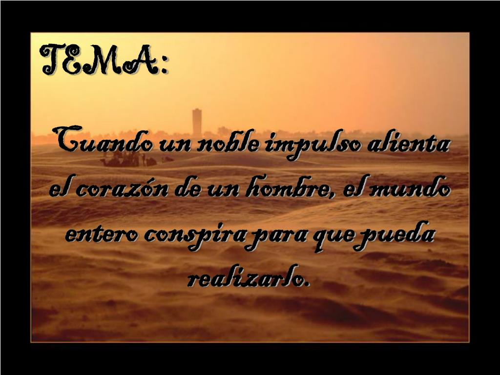TEMA: Cuando un noble impulso alienta el corazón de un hombre, el mundo entero conspira para que pueda realizarlo.