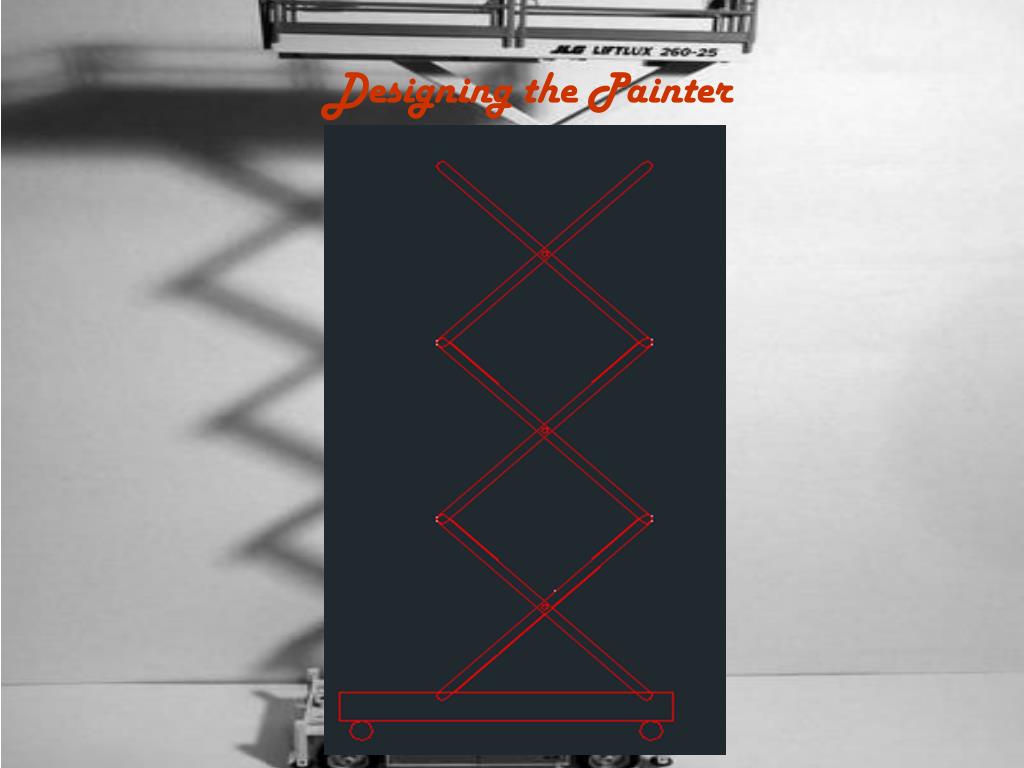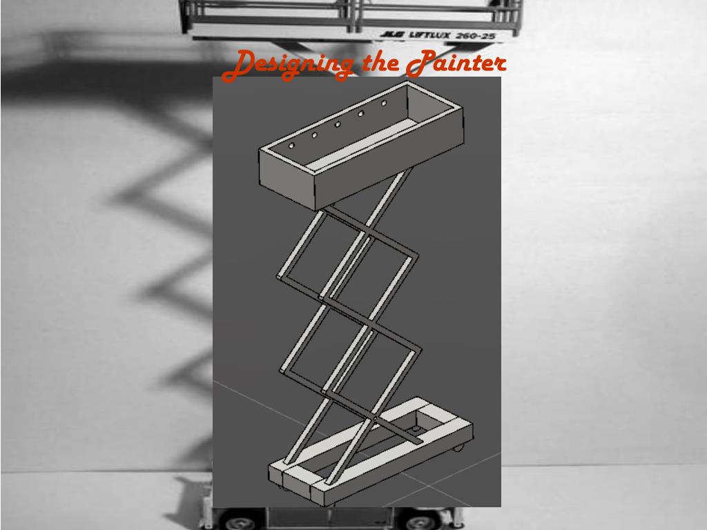 Research • After researching different types of hydraulic elevator platforms, I decided a scissor lift was best fit for this project. • Another important decision was the type of paint. The paint that I found to be quickest, most convenient, and most portable was spray paint. • For these reasons, the painter is designed to have 3 cans of spray paint in the casing that spray out paint as it moves. • A high torque motor would also have to be used for this machine. It would attach to the platform and move the mechanism up and down.