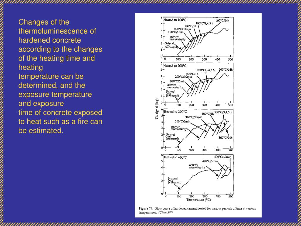 Changes of the thermoluminescence of hardened concrete according to the changes of the heating time and heating temperature can be determined, and the exposure temperature and exposure time of concrete exposed to heat such as a fire can be estimated.