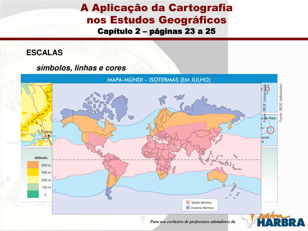 A Aplicação da Cartografianos Estudos Geográficos Capítulo 2 – páginas 23 a 25 ESCALAS símbolos, linhas e cores