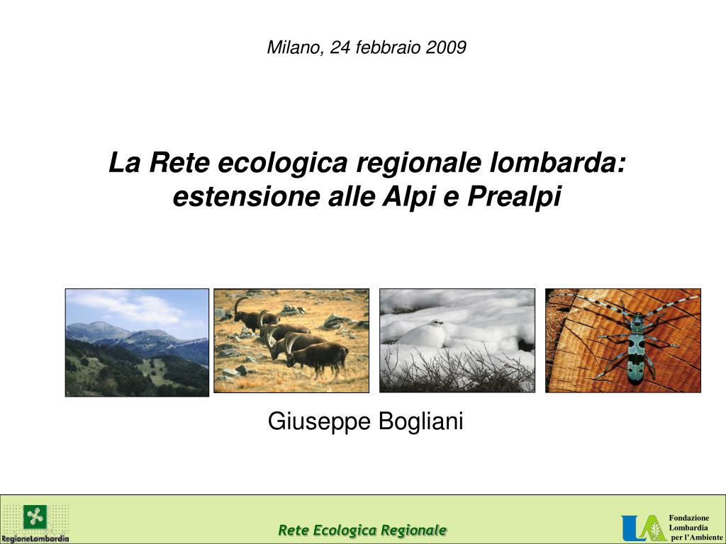 Milano, 24 febbraio 2009 La Rete ecologica regionale lombarda: estensione alle Alpi e Prealpi Giuseppe Bogliani Fondazione Lombardia per l’Ambiente Rete Ecologica Regionale