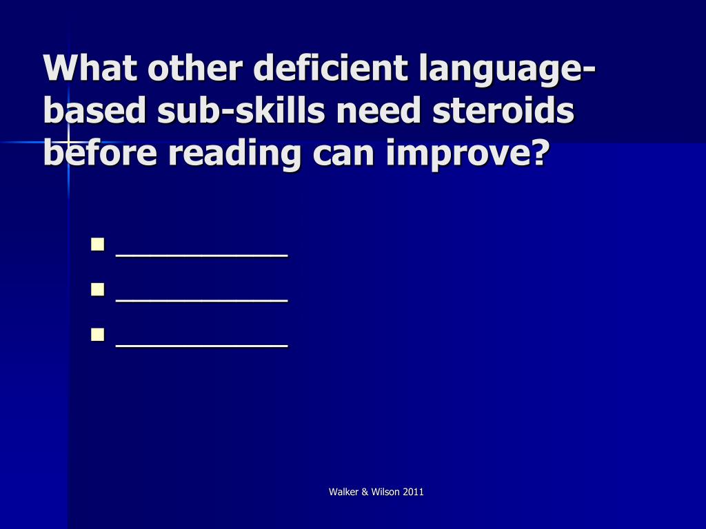 What other deficient language-based sub-skills need steroids before reading can improve? • __________ • __________ • __________ Walker & Wilson 2011
