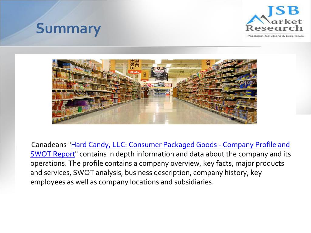 Summary Canadeans "Hard Candy, LLC: Consumer Packaged Goods - Company Profile and SWOT Report" contains in depth information and data about the company and its operations. The profile contains a company overview, key facts, major products and services, SWOT analysis, business description, company history, key employees as well as company locations and subsidiaries.