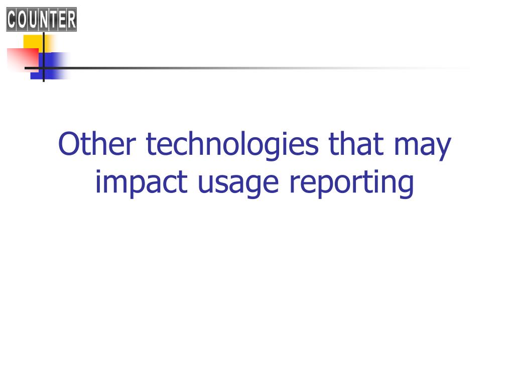 Current issues • Interface and user behaviour effects on usage statistics • E.g. downloading HTML and PDF of the same article in one session • COUNTER is testing data filter solutions, but what does the duplicate downloading signify? • Reporting separately purchasable digital archive usage • Currently all usage for a journal is usually reported together • Separately purchasable archives mean we need separate reports for archival content, or a year of publication breakdown of usage • Usage in Institutional Repositories • Growth in Institutional Repository (IR) content • Need for credible IR usage statistics • IR usage statistics already being collected, but no standards • What to count and what not to count:- • How to deal with partial open access journals • How to deal with journals whose content becomes free after a fixed time period