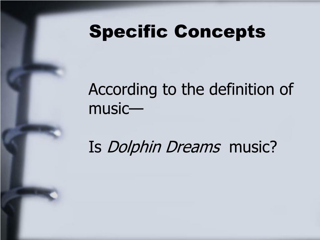 Specific Concepts • According to the definition of music— • Is Dolphin Dreams music?