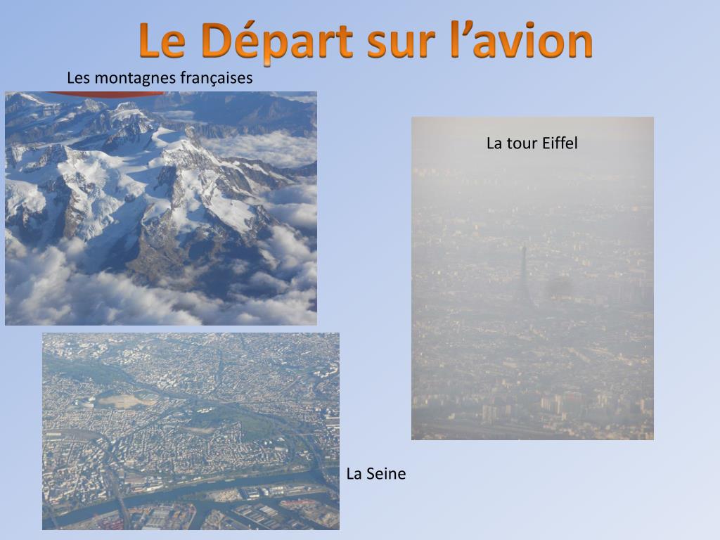 Le Départ sur l’avion Lesmontagnesfrançaises La tour Eiffel La Seine