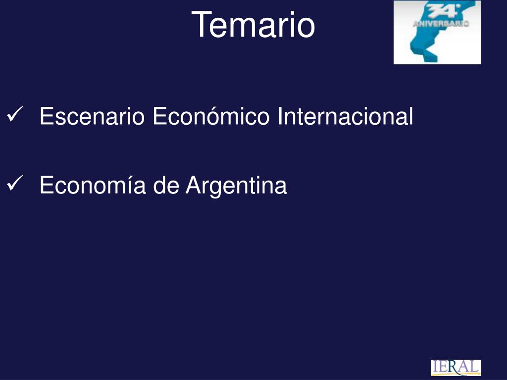 Temario • Escenario Económico Internacional • Economía de Argentina