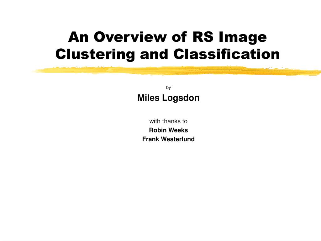 An Overview of RS Image Clustering and Classification by Miles Logsdon with thanks to Robin Weeks Frank Westerlund