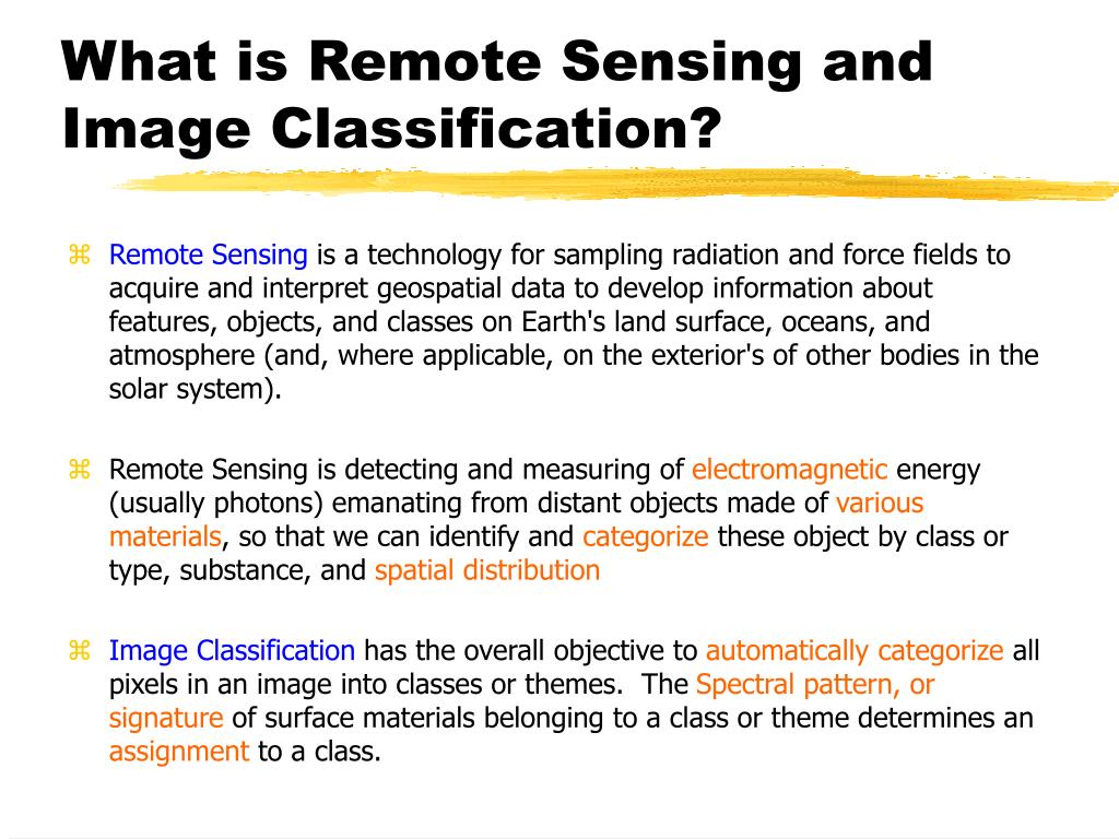 An Overview of RS Image Clustering and Classification. by Miles Logsdon with thanks to Robin Weeks Frank Westerlund. What is Remote Sensing and Image Classification?.