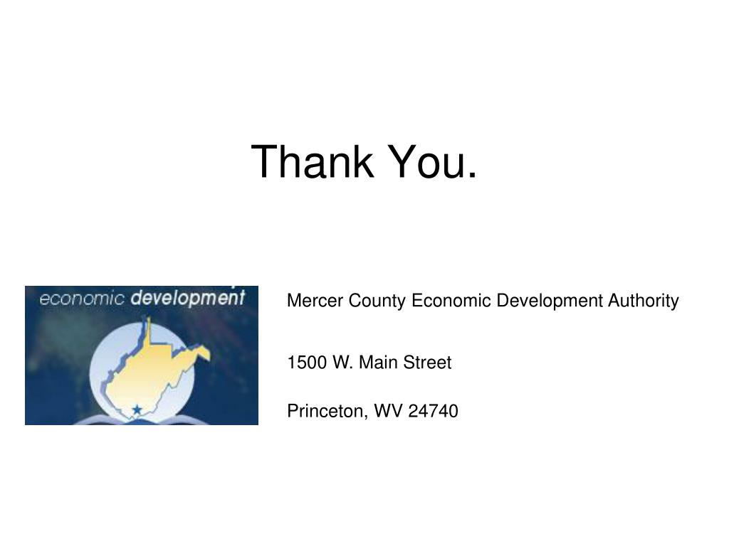 Thank You. Mercer County Economic Development Authority 1500 W. Main Street Princeton, WV 24740