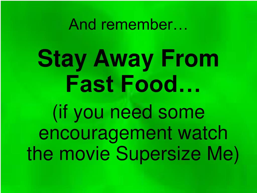 And remember… Stay Away From Fast Food… (if you need some encouragement watch the movie Supersize Me)