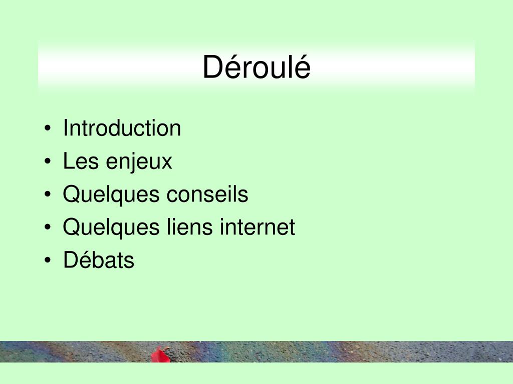 Déroulé • Introduction • Les enjeux • Quelques conseils • Quelques liens internet • Débats